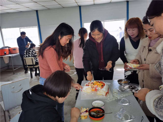 3月8日上午控股公司买了一个大蛋糕给全体女员工一起分享,每个人脸上都洋溢着幸福的微笑。